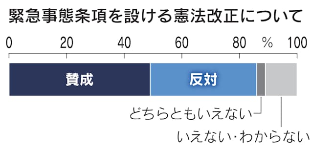 緊急事態条項に 賛成 49 憲法改正 議論を 72 日本経済新聞